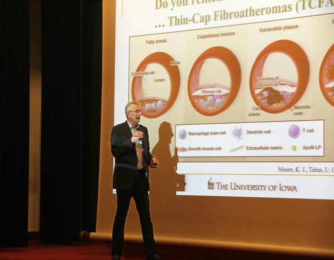 5 日清晨,在主持人Daniel Rueckert 的短暂发言后,Milan Sonka 开始了他的汇报。Milan 主 讲的内容是对心脏移植患者的冠状动脉壁形态的定量分析。他所讲述的方法是快速、有效的,有助 于准确的对冠状动脉壁厚度变化的精确量化。早期诊断是极其重要的,可以减少与腔体相关的移植 失败。