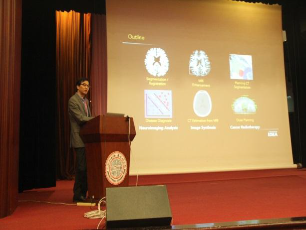 美国北卡罗来纳大学教堂山分校沈定刚教授是医学影像领域的权威学者,他的报告讲述了他们目前正在研究的深度学习方法在脑影像中的应用,目的在于及时发现如自闭症、阿兹海默症等潜在的疾病,尽早予以治疗。